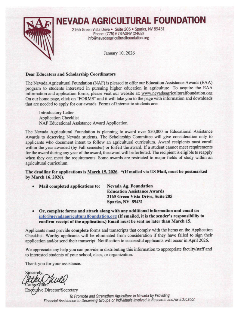 Nevada Agricultural Foundation Scholarship