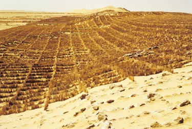 Erosion by Glaciers Glaciers are so enormous and massive that we can hardly imagine how heavy they are, yet though they are beyond imagination to sense their weight they do move like a slow river of ice. When a big mass like a glacier moves nothing can stop it. A moving glacier is really a moving, flowing river of ice. There are two kinds of glaciers: sheet glaciers and valley glaciers. Sheet glaciers are also called continental glaciers because they cover continents. ![]() Today there are sheet glaciers, one over Greenland and the over Antarctica (South Pole). Many thousands of years ago a sheet glacier covered Canada and where the northern states of the United States are today. When a glacier stops moving forward and starts to melt away the glacier is retreating. As the glacier moves it is so massive that it literally carves deep grooves into the bedrock below it. Glaciers pluck out large rocks and scrapes up the soil and sediment and rocks it passes over like a huge bulldozer. This movement of the sediment with the glacier is Glaciers leave behind Till through the melting water: Outwash In valley glaciers the till is called moraine instead and is not as much in quantity as a sheet glacier because it is a valley glacier is smaller than a sheet glacier. The moraine (sediments) that a valley glacier melts is the sediments that were at the tail end of the glacier. The moraine is left behind as a large accumulation of rocks and can look like a hill of sediment. Valley glaciers come off the top of very high mountains. They follow the curvature of the mountain similarly to a stream of water, but they carve out a large valley shape as they go. The shapes of valleys that are created by a glacier are U-shaped. The shape of valleys carved out by water rivers are V-shaped. Below you see a U-shaped valley carved out by a valley glacier.![]() The speed of a glaciers movement Glaciers move at a speed of from one foot a day to up to 50-60 feet a day. The speed of glaciers vary from day to day. The bottom of a glacier may move slower than the top. The speed depends on the slope it is traveling, the roughness of the terrain it is traveling over, the height of the glacier. If a new snow falls and the glacier gains 2 feet of height and is now heavier it may move faster for a while and then slow down again. Wind Erosion Protect the soil with vegetation